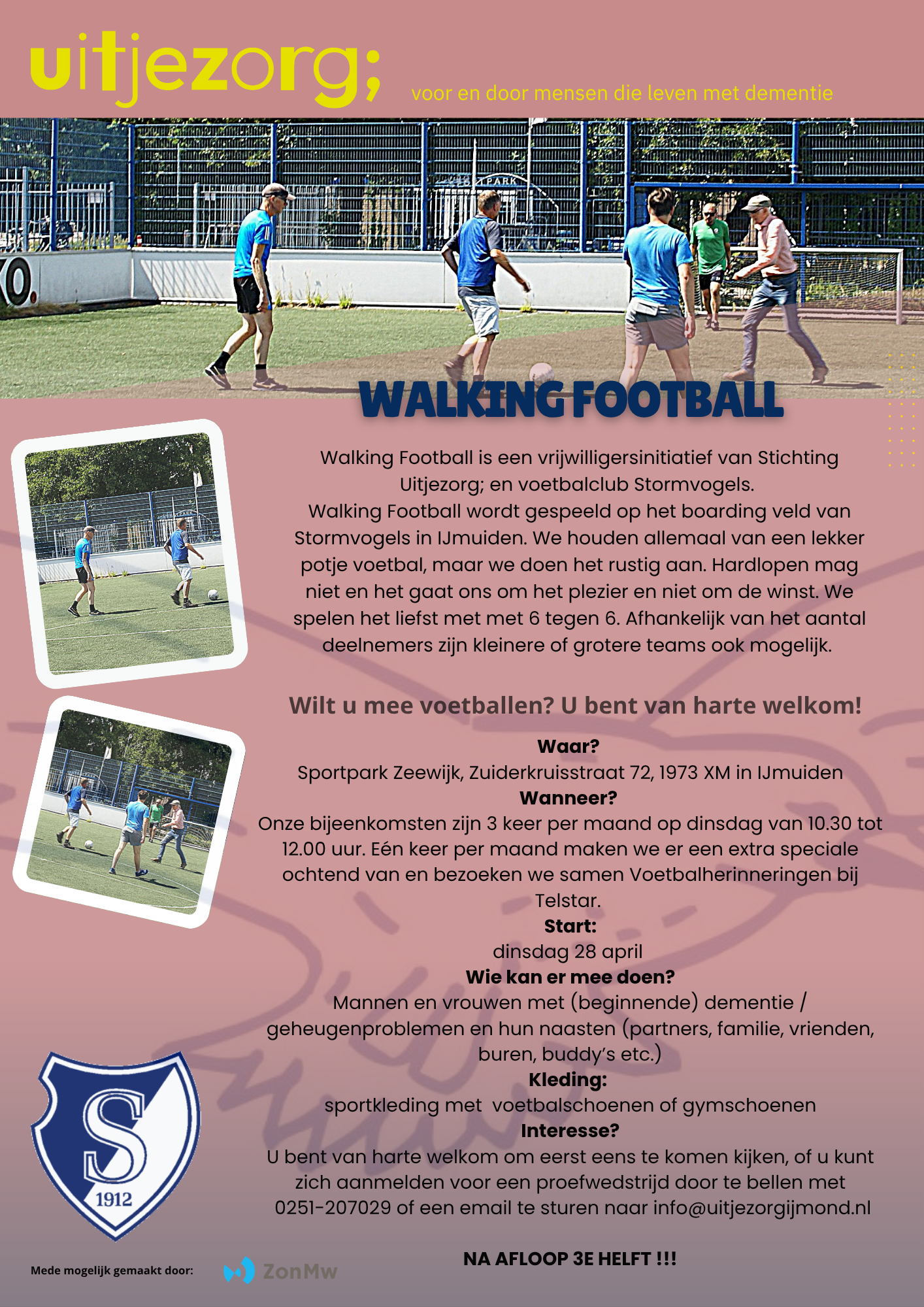 Walking Football is een vrijwilligersinitiatief van Stichting Uitjezorg; en voetbalclub Stormvogels.